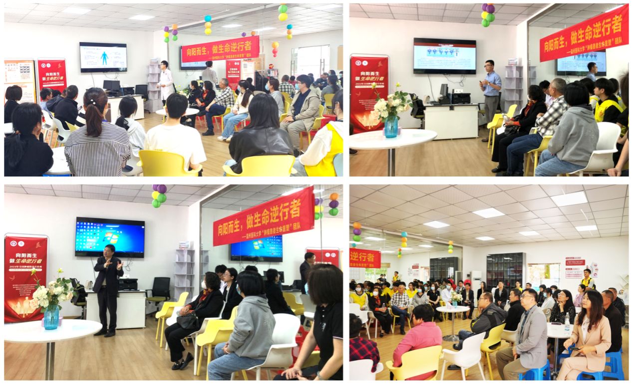 4.18日上午,在第30届全国肿瘤防治宣传周,温医大检生学院“肿瘤患者生命重塑”公益团队、病原生物学与免疫学系党支部、研究生第三党支部和本科在校生党支部师生党员,携手丽水市人民医院血液科联合开展“向阳而生,做生命逆行者”主题党日活动,为肿瘤患者及家属送上暖心慰问和祝福,并开展了肿瘤防治科普讲堂和温医大检生学院自主研发的超能CAR-T细胞治疗肿瘤技术的交流活动,为患者送去了关爱、科技和希望,鼓励患者“向阳而生,做生命逆行者”。